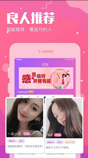 千寻视频相亲App具有海量优质单身注册会员,大部分会员为高学历,以海归、留学生、外企白领等群体为主,多数生活条件优越,婚姻质量有保证。每个注册用户都拥有专属的个人动态主页:随时分享生活每个温情瞬间,营造属于自己的相亲朋友圈。智能交友大厅更可根据你填写的资料信息自动筛选、智能推荐满足征友条件的用户,光速找到属于自己的缘分。