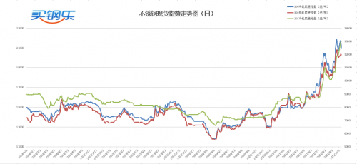 原料市场方面镍铁均价上涨15元/镍、铬铁均价持平,电解镍金川价格下跌1200元/吨,电解锰出厂价上涨1000元/吨。