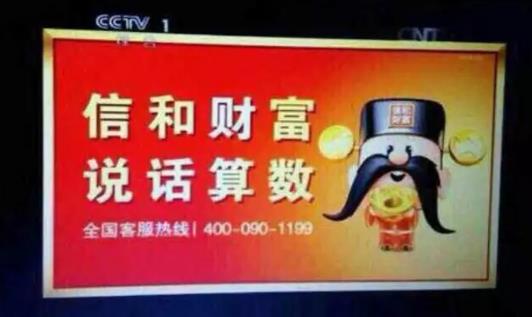 不得不说,夏昕也算是几年前搞营销的高手。给信和背书,夏靖在央视和地方电视台疯狂打广告,2014年,信和财富喊出了“信和财富,说话算数”的口号。