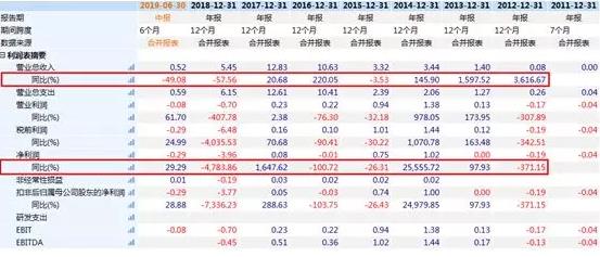 尽管雅高控股2017年营收和净利润分别增长20.68%和1647.67%,并实现扭亏,但2018年公司营收却惨遭减半,只收入5.45亿元;同时净利爆降19倍,从2017年的800多万转为亏损近4亿。2019年中期业绩虽然有所好转,但由于所持的两份采矿许可证续期申请在今年被拒,公司中期营收仅4795万元,同比下滑51%,亏损收窄29%至2902.7万元;净利2880万元亏损,从趋势看,公司的净利润亏损依然呈震荡向下趋势。除此以外,公司现金流也逐渐恶化,账上现金只剩8228万元,现金减少1790万元。