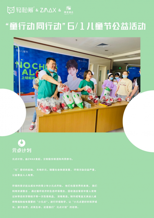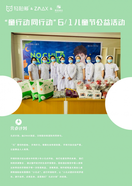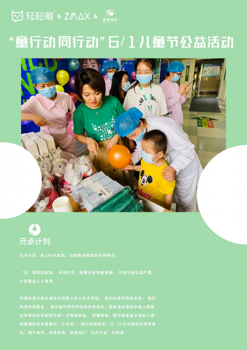 据了解,由于酒店提供的牙膏、牙刷、梳子、香皂等用品大多使用过一次就丢弃,不但造成巨大浪费,其不可降解性还会对环境造成负担。ZMAX品牌于2019年5月发起元点计划,潮漫品牌积极参与其中,利用资源整合、通过循环经济的生态环保理念,回收酒店客房中客人使用过未带走的牙刷梳子等一次性易耗品,消毒再造,制作成笔盒文具幼儿桌椅等捐助给有需要的“小元点”,进行环保助学,让“小元点”更好的筑梦成长,同时号召更多爱心企业及爱心人士参与到元点计划之中。“元”是一切的起始,天地於元,随着社会快速发展,环境污染日益严重,公益事业人人有责。环保的意识应从成长中的青少年——“小元点”开始,他们也是世界的未来。源于自然,点亮生命,这是“元点计划”被创立的初衷。据统计,截止2019年12月,ZMAX和潮漫共回收了2000多个一次性牙具梳子共四箱,文具盒共制作3000个,共参加了3次公益活动,累计共帮助2900位小朋友。