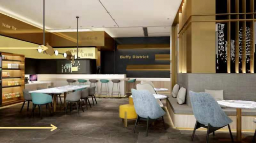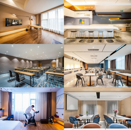 潮漫酒店通过对酒店使用功能的整合,将“联合办公公区+休闲现代设计客房+多功能体能充电站”等结合于一体,既满足不同客人的出行需求,又能有效解决部分空间使用率低的问题。