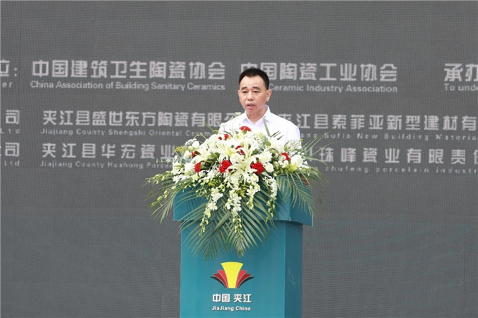 中国陶瓷工业协会常务副理事长吴越申在致辞中说,陶瓷作为夹江支柱产业之一,为活跃地方经济、增加地方税收、解决老百姓就业,以及带动地方第三产业发展起到了积极作用。夹江陶瓷产区民营企业占主体地位,在全球经济形势整体下行的背景下,企业家们抓住机遇、趁势而上,快速发展成为全国第二大岩板生产基地,引领着整个西部岩板产业前进,夹江陶瓷产区依然充满活力。希望夹江陶瓷产区继续坚持绿色发展、创新发展,取得更加辉煌的成绩!