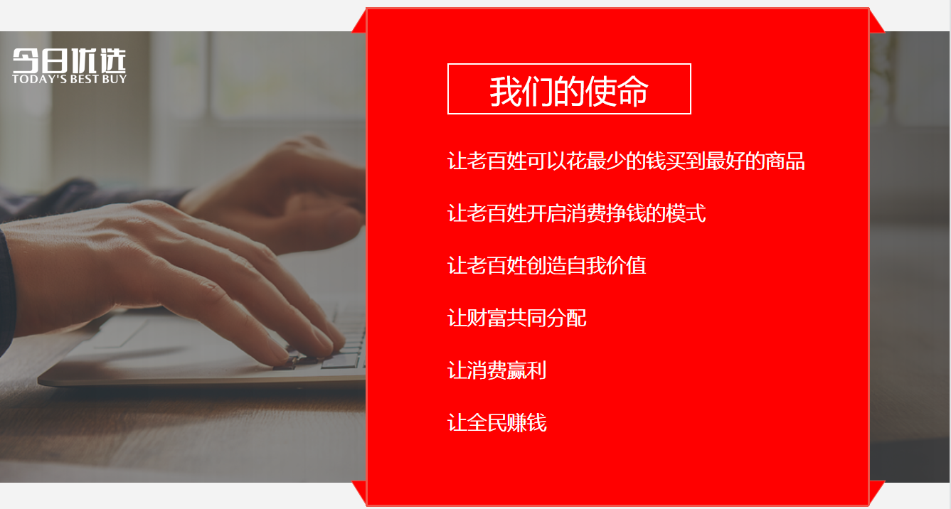 如今,社交网络已经成为最大的流量入口,商业、媒体、娱乐都完成了社交化,甚至支付都完成了社交化,交易必然向移动社交网络迁移,这是当前的发展趋势。今日优选通过精选商品,为用户节省时间和精力,发挥零售商的价值,同时通过强化社交属性让零售的本质归位,从而充分打造私域流量入口,创新零售消费新场景,相信未来今日优选大有可为。